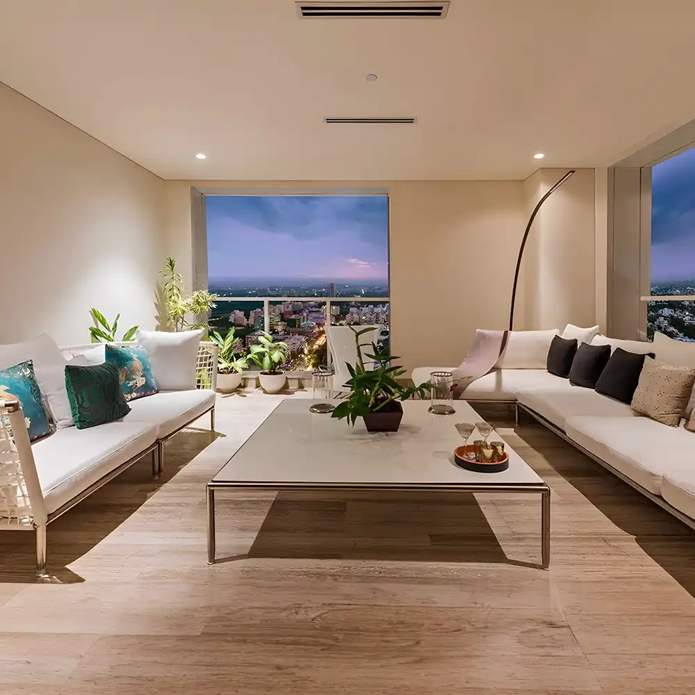 Trump World Center Pune commercial property is spread over over 1.6 million sq. ft. This first-of-its-kind Trump commercial project in India will feature two iconic glass towers with over 27 floors of office space. One tower will offer sale strata offices, while the other will provide larger leasable offices, catering to a range of business needs. The landmark Trump properties is poised to set a new benchmark of excellence and sophistication, reflecting the commitment to quality that defines Trump properties across the globe.